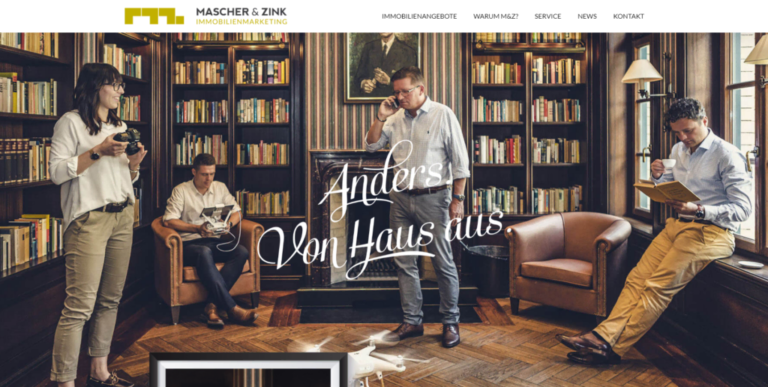Die Mascher & Zink Immobilienmarketing GbR ist eine Agentur für Immobilienmarketing aus Erfurt. Mit der langjährigen Erfahrung seiner Mitarbeiter und Mitarbeiterinnen strebt man im Unternehmen an, aus jedem Haus ein exklusives Angebot zu machen, ob Altbau oder Neubau. Das Unternehmen übernimmt für seine Kunden sämtliche Maßnahmen von Markenbildung, Naming, Logogestaltung und Corporate Identity bis hin zu Visualisierungen und Grundrissillustrationen, Exposédesign, Bauschildern usw. für die Vermarktung einer Immobilie. Mascher & Zink agieren nicht nur in Deutschland, sondern auch in Österreich und der Schweiz.